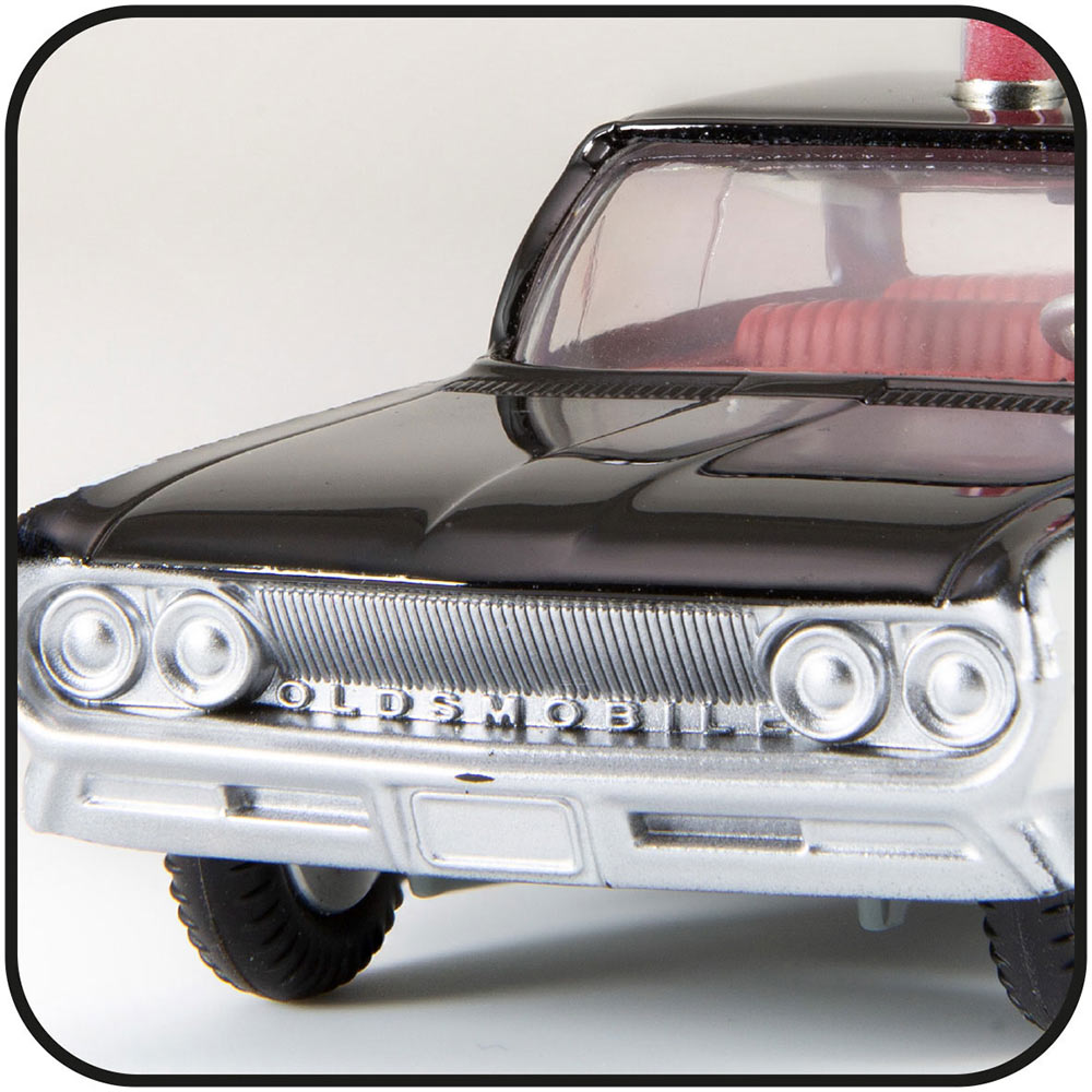 With its iconic black and white livery and silver foil ‘County Sheriff’ roundels on the doors, it stayed in the Corgi range until 1966. Corgi went on to produce two further Oldsmobile Super 88 models – a rather sedate family saloon (Corgi 235), then in 1966, the classic feature-laden Man from U.N.C.L.E.‘Thrush-Buster’ (Corgi 497).