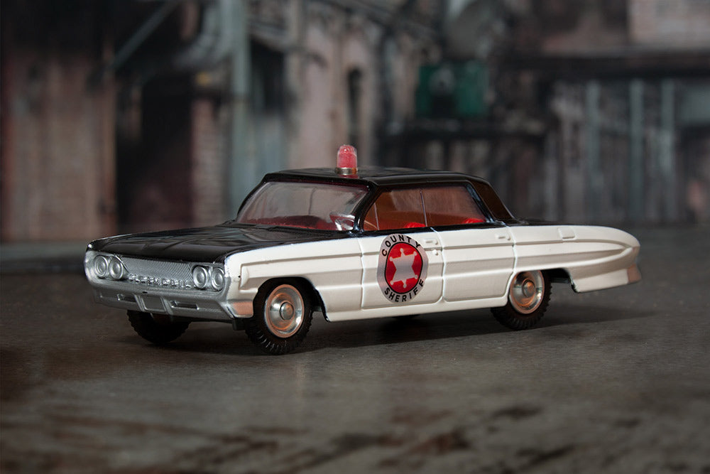 Based on 1961’s Oldsmobile Super 88, this classic American police car model was released in 1962. Corgi produced around 615,000 – an indication of how influential US cop shows and movies were at the time. Given ‘Glidamatic’ suspension and a roof-mounted emergency light, it was perfect for car chases across the living room floor – no doubt receiving chips to its paintwork as it collided with skirting boards and rammed into the hapless getaway car model!