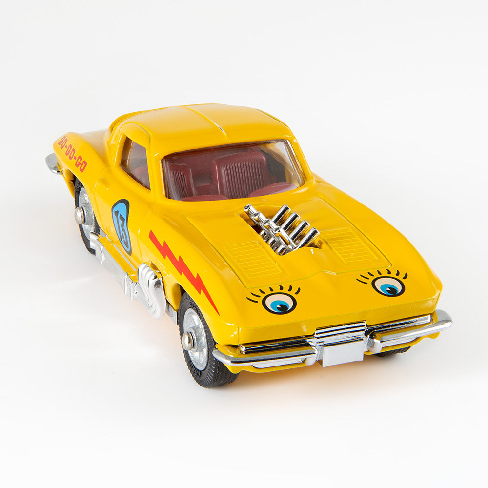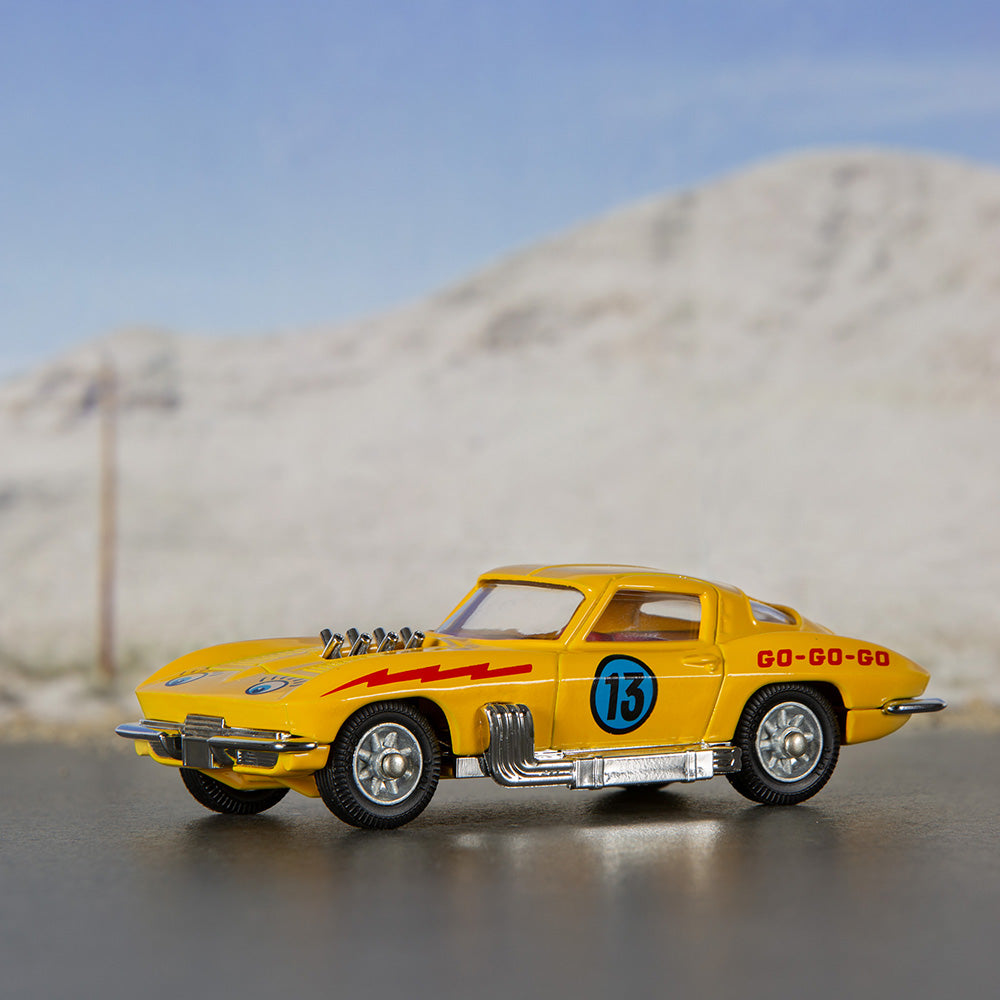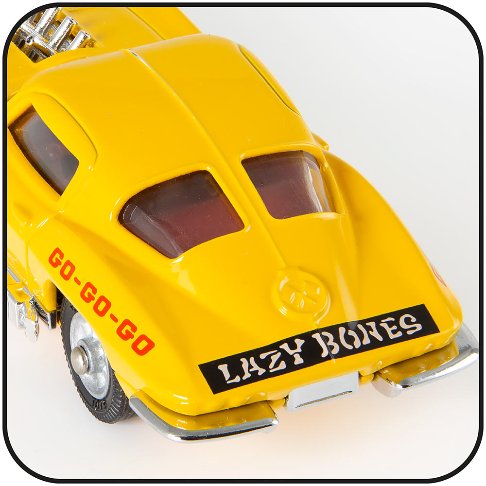 Based on an earlier Corgi Sting Ray (310) – which was issued in 1963 – this exuberant re-tooling from 1967 grabbed the attention of British schoolboys by the scruff of their necks and transported them to the drag racing strips of North America.