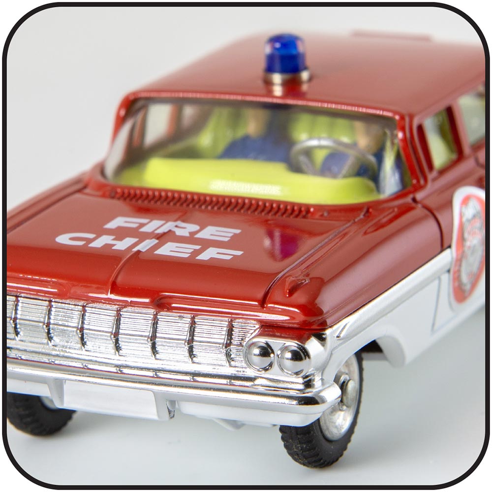 The most noticeable aspect of Corgi’s second Impala casting was its split die-cast body. This allowed the two halves to be painted separately which avoided errors and wastage.The Chevrolet Fire Chief’s car was in the Corgi range from 1965 to 1969.